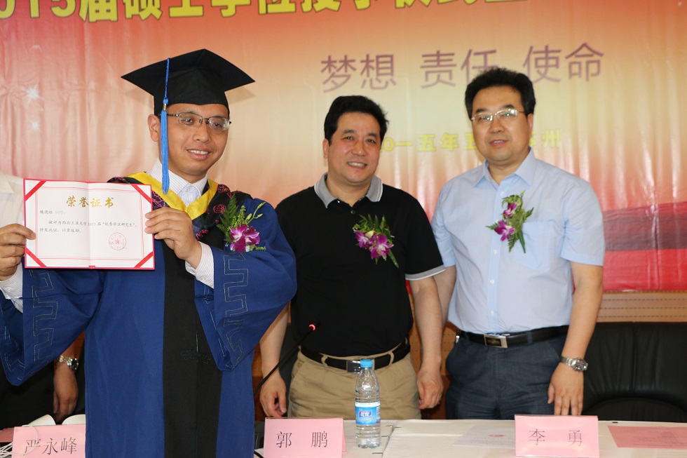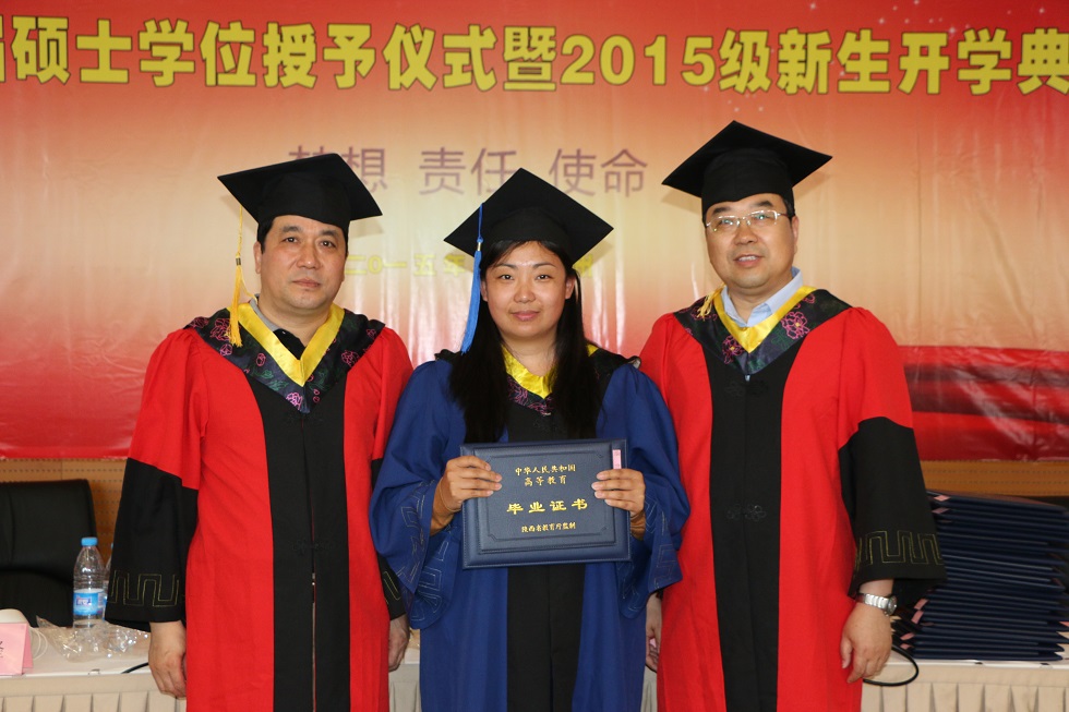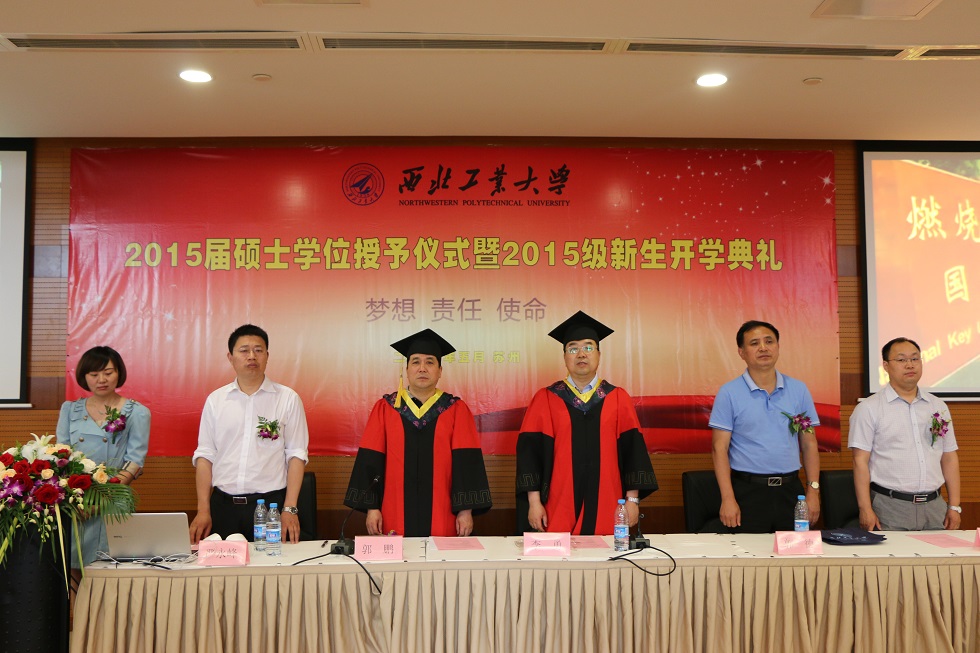 在学位授予环节,郭院长宣读了西北工业大学对2012级毕业生学位授予的决定和魏晓栋被评为西北工业大学2015届“优秀毕业研究生”的决定,李院长给毕业生颁发研究生毕业证书和硕士学位证书,郭院长给每一位硕士帽拨穗,这标志着2012级毕业生正式毕业。大会在气势磅礴的西北工业大学校歌中圆满结束。