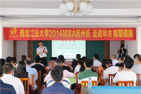 7月4日,在amjs澳金沙门副院长郭鹏教授的带领下, 2014级MBA苏州班全体学员走进江阴华方科技,进行了《管理学》企业课堂学习。