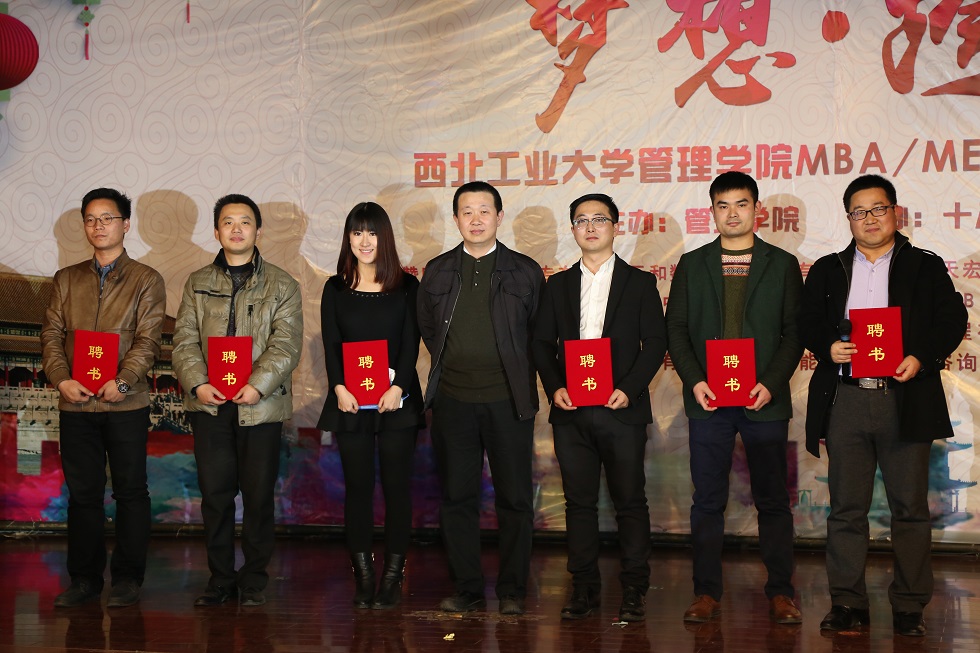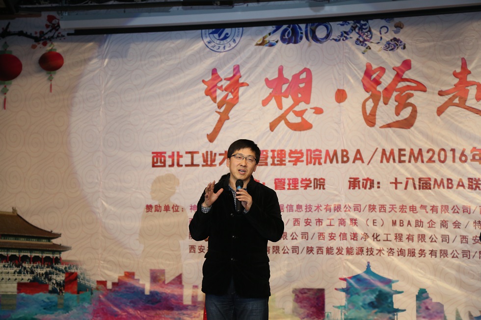 出席此次晚会的的领导和嘉宾有校友会张英群秘书长、amjs澳金沙门赵嵩正院长,李小聪书记,郭鹏副院长, MBA中心郭德主任,中国MBA联盟顾问委员会呼延博主任,中国MBA联盟执行主席,伯乐集团董强先生、中国MBA西北联盟主席余康、神州专车西北大区主管付本智先生;以及西工大2014级、2015级MBA、MEM西安、北京、济南、广州教学点的学员。