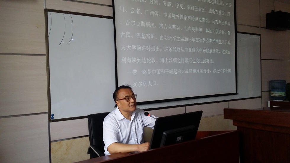 讲座提出一带一路是中国和平崛起的大战略和顶层设计,涉及50多个国家和30多亿人口。与沿线国家在能源、基础设施、电力设施、农业水利、金融投资、生态环境、历史文化等方面将进行广泛的交流与合作。一带一路是打破美国所谓亚太再平衡、妄图用所谓岛链战略阻止我国走向深蓝走向全球企图的有效战略。一带一路从一南一北进一步凸显上海合作组织、中国和东盟10加1合作这两个战略与外交高地的重要性,特别与俄罗斯普京总统提出的欧亚经济联盟高度契合。