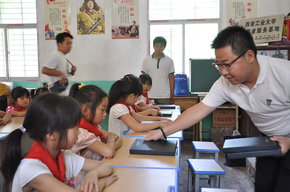 7月2日,amjs澳金沙门第十八届MBA联合会一行二十余人在黄辉主任和联合会主席苏振兴的带领下来到蓝田县九间房镇李家坪小学,开展“鸿鹄抒壮志•爱心留校园”捐赠活动。