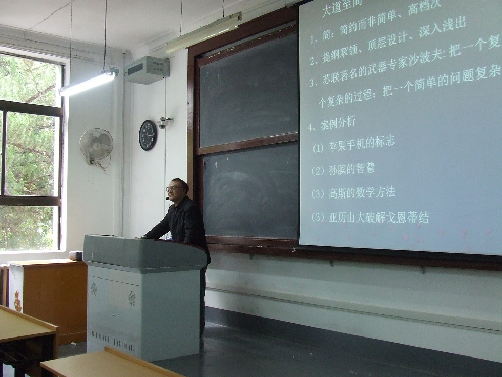 10月16日,我院举办了《中外优秀文化与管理创新-----“系统变革”与“大道至简”》讲座。本次讲座主讲人为我院经济贸易系教授李建中老师。专业学位2016级MBA、MEM全体学员聆听了本次讲座。