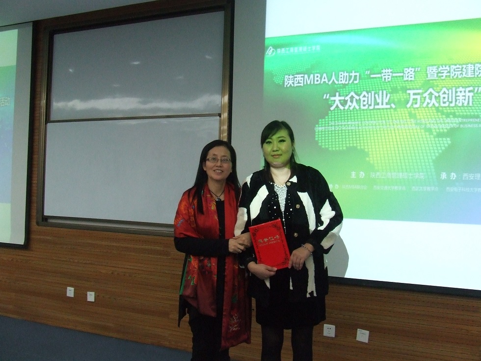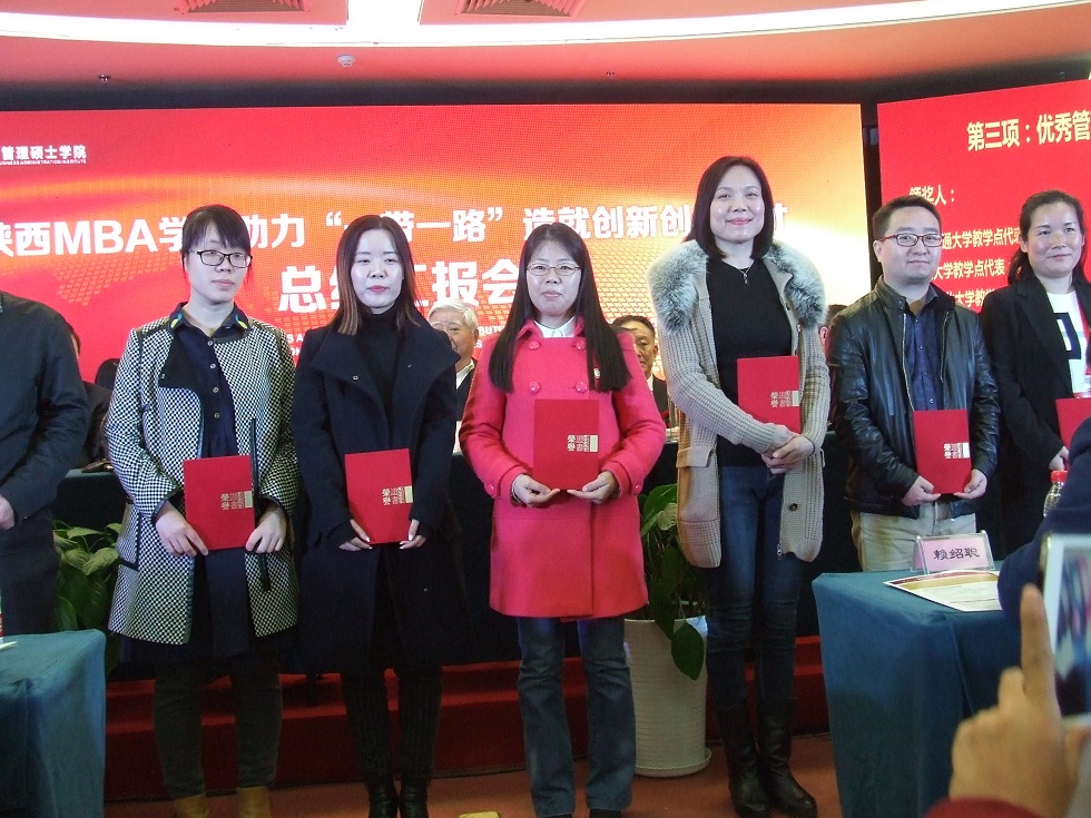 庆祝活动首先在学员林中举行了“十年树木,百年树人”仪式,领导与校友们共栽学员树,祝陕西工商管理硕士学院常青。然后举行表彰大会,我校amjs澳金沙门郭鹏,潘杰义,李建中,王莉芳,梁工谦,蔡建峰,朱煜明,张树娟,常玉,柴华奇10位教师荣获“优秀教师”称号;MBA教育中心孙若妮,孙昕老师荣获“优秀管理工作者”称号;我校周向群,王峰,张世明,王妍,刘志懿,郝文选,郑宝,折保宏等26位校友荣获“优秀毕业学员”称号;张卫红副校长为获奖代表颁发了证书。庆祝活动最后举行“大众创业、万众创新”的创业大赛,我校喜获三等奖。