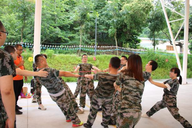 极限逃脱,考验和训练队员们坚定的信念和自我潜能激发的能力。在规定的时间里,大部分团队和同学们都顺利逃脱,只有一位娇小的女同学落在了最后,在一次次艰难地尝试中,她的胳膊和膝盖在和地面的反复摩擦中都出了血,但她毫不气馁,仍在坚持,最后终于在所有队员的欢呼声中成功地完成了任务。成功之时,大家脸上和身上虽然都挂满了汗水和伤痕,内心却充满了征服和挑战自我的欣慰。