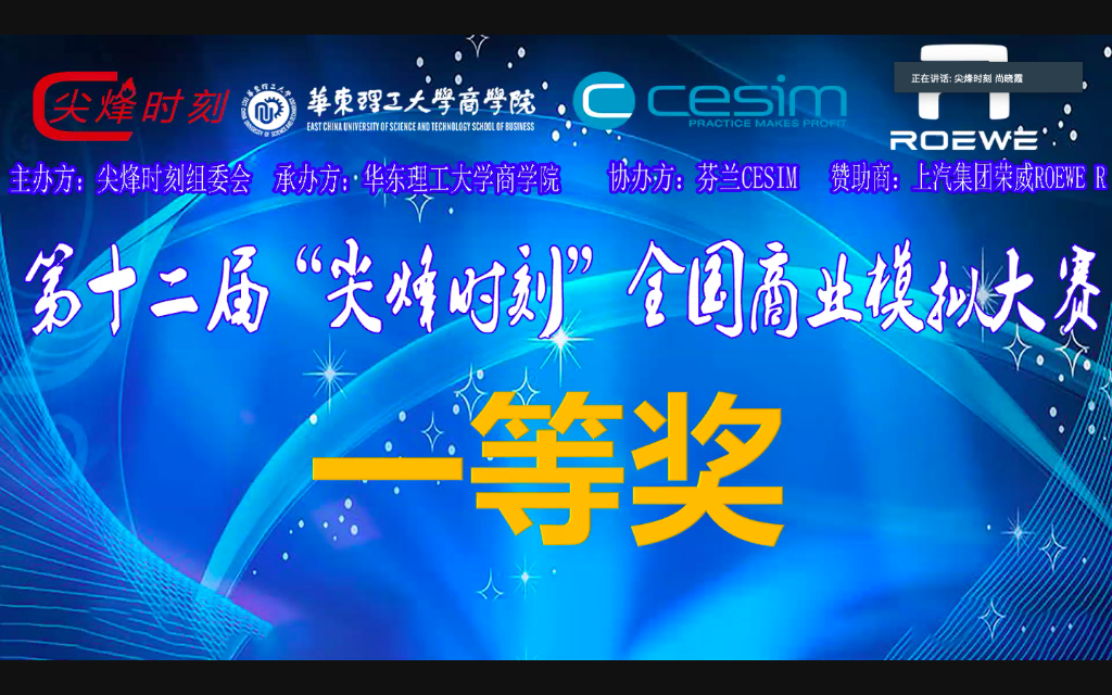9月9--13日,第十二届“尖烽时刻”全国商业模拟大赛总决赛通过zoom平台线上成功举办。由我校2019级MBA学生杜天骄,杜昱辰、石玥祎、刘文承组成的“红日初升”队,通过商业路演视频拍摄、英文团队介绍、平台商业模拟运营、商演答辩等环节的综合比拼,最终喜获MBA研究生组全国一等奖和最佳视频奖两项殊荣。我校也是西部地区唯一一所获得全国一等奖的高校。