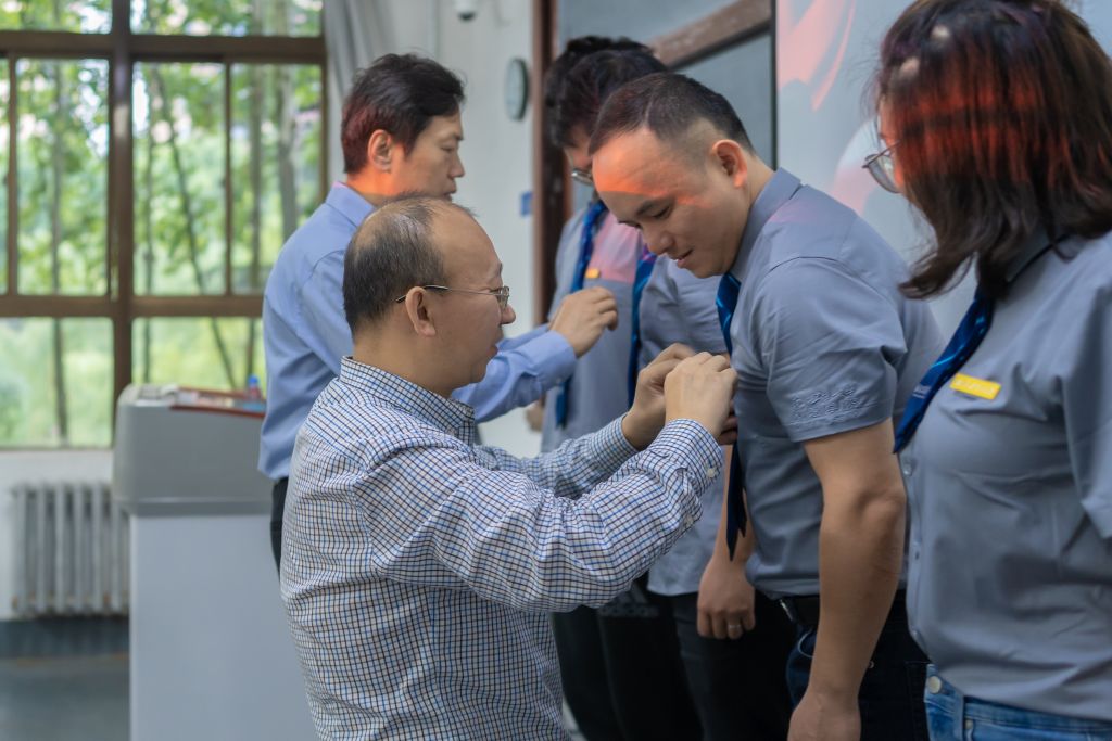 amjs澳金沙门院长车阿大、党委书记乔彩燕、副院长郭云涛、副书记樊琳、MBA/MEM教育中心主任杨宏玲、MPAcc教育中心/管理案例研究与开发中心主任金帆、MBA/MEM教育中心副主任孙若妮、肖平,利用上课前的时间,分别到各班的教室,为各班授予班旗,为新生代表佩戴校徽,并为2021级新生送上了中秋月饼以及对学子们浓浓的关爱和满满的祝福。