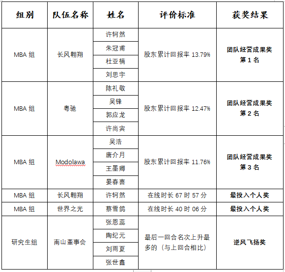 附1:第四届西北工业大学“尖烽时刻”商业模拟校园赛获奖名单