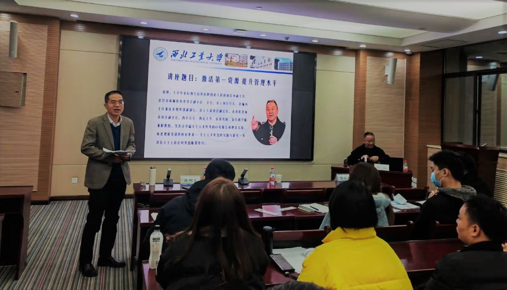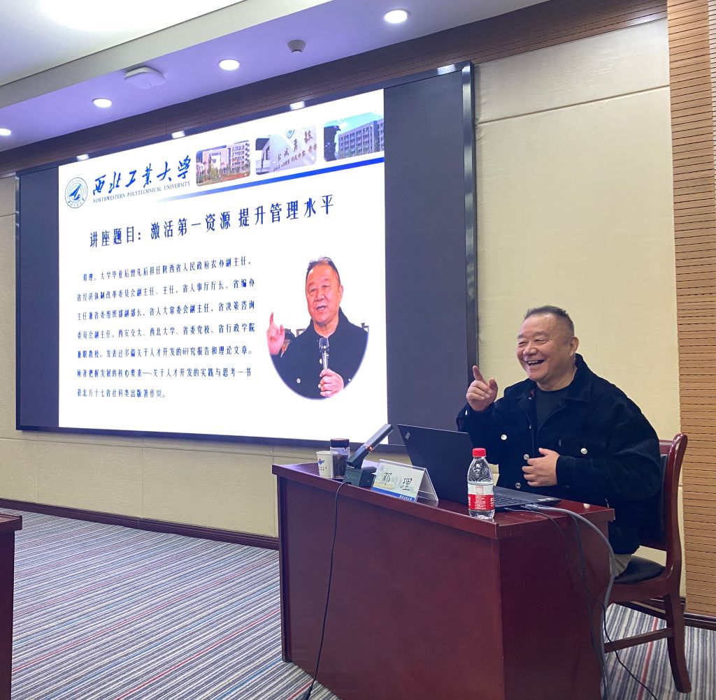 11月21日上午,我院邀请陕西省十届人大常委会副主任邓理为专业学位研究生作《激活第一资源,提升管理水平》的讲座,讲座由amjs澳金沙门院长车阿大主持。