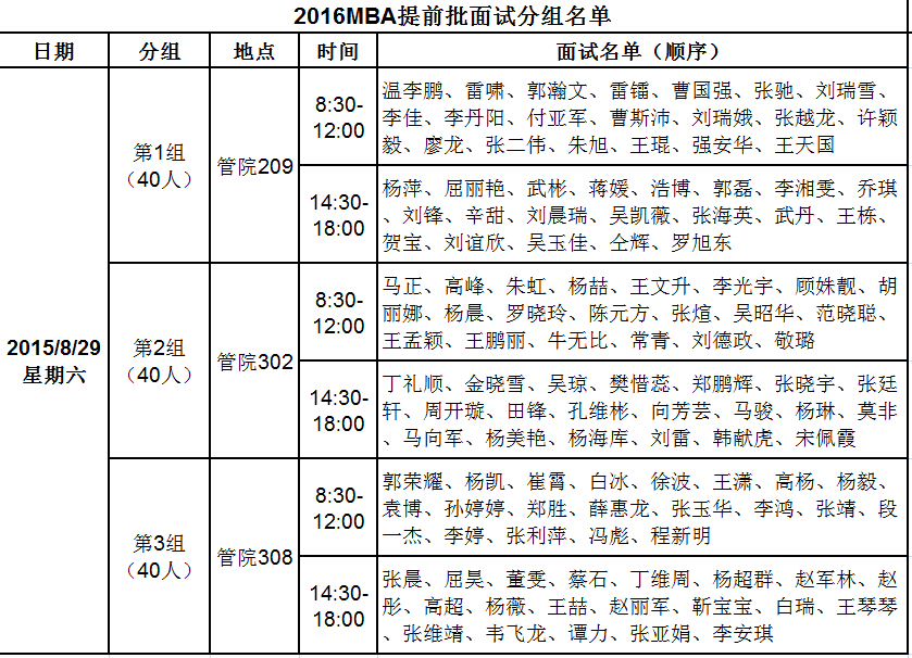 注:面试后7天内在amjs澳金沙门MBA主页(glxy.nwpu.edu.cn/mba)公布提前批面试成绩优秀、良好名单,考生登录查询