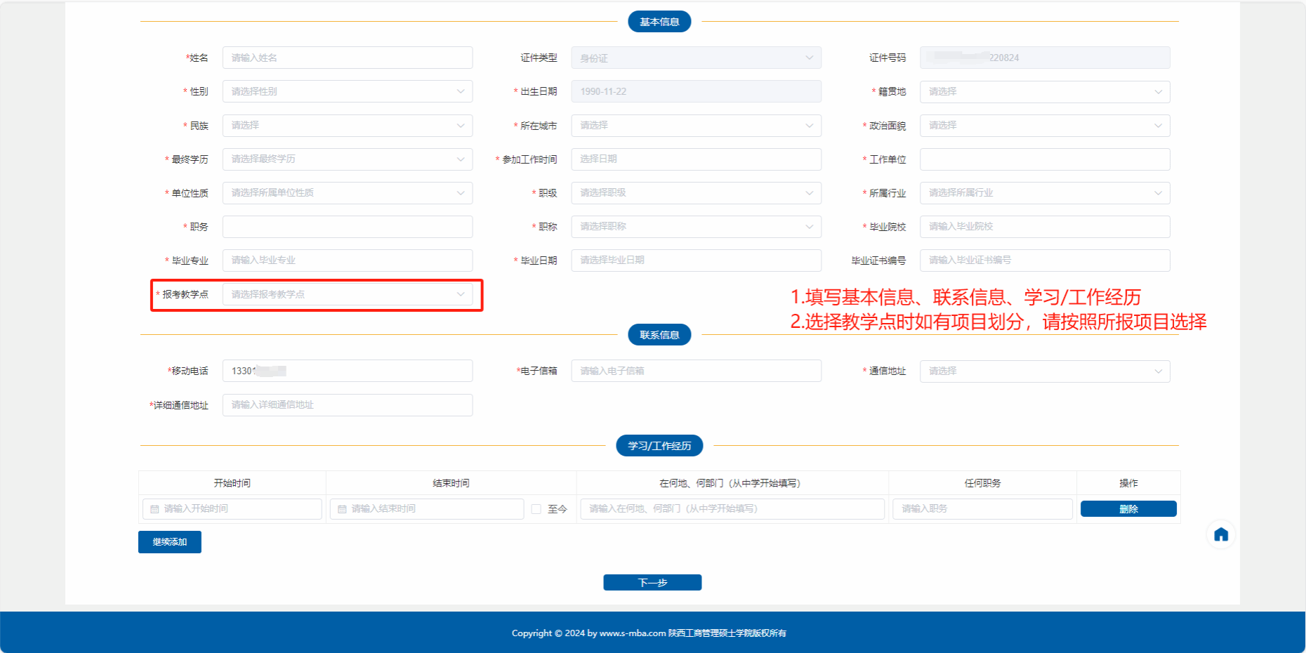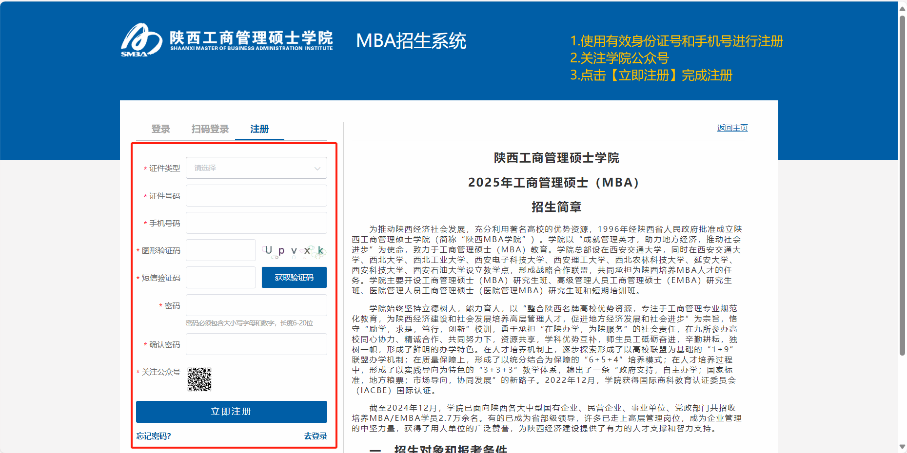 考生需登录陕西工商管理硕士学院网站http://www.s-mba.com,按要求填写报名登记表(报名表可下载)。