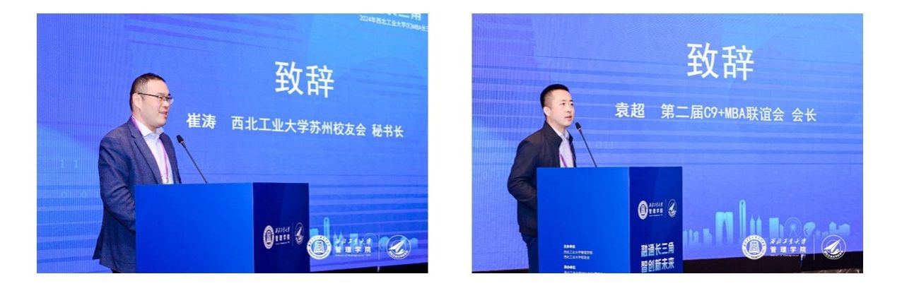 西北工业大学苏州校友会秘书长崔涛在致辞中表示,此次活动是苏州校友会与MBA暨专业学位联合会第一次联合承办大型专场活动,意义重大,也为后续校友之间进一步融合发展打下了坚实的基础。C9+MBA联谊会会长袁超代表联谊会对论坛的顺利举办表达了热烈祝贺。