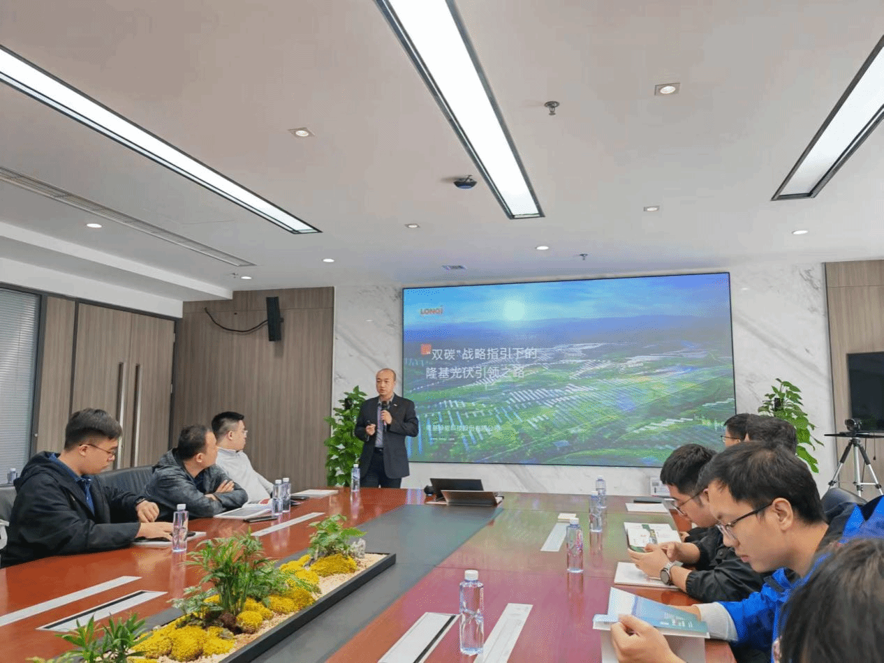 下午,访学团到隆基绿能科技股份有限公司参访。参观了隆基智慧能源展览馆及光伏生产线,聆听了隆基绿能品牌规划总监李濛的《“双碳”战略指引下的隆基光伏引领之路》讲座。了解我国光伏企业从“三头在外”(原料在外、市场在外、设备在外)的困局走向“全球领先,世界名片”的巨大飞跃。