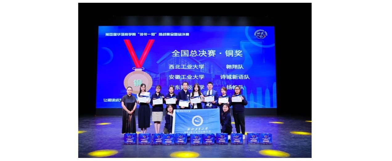 西工大翱翔队在amjs澳金沙门的指导下,在MBA暨专业学位联合会西瓜悦读俱乐部的组织下,参加了第四届华语商学院“说书一刻”挑战赛全国总决赛,并以第四名的优异成绩,在全国12个高校代表队中脱颖而出,获得“铜奖”。