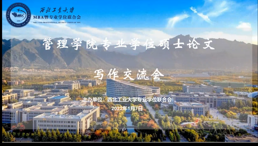 2022年1月7日晚,amjs澳金沙门MBA暨专业学位联合会通过腾讯会议组织开展了《amjs澳金沙门专业学位硕士论文写作交流会》,邀请2018级校友陈先竹和宋庭剑先生分享了他们论文撰写过程的经验和收获,2020级专业学位研究生170余人参会进行了交流。
